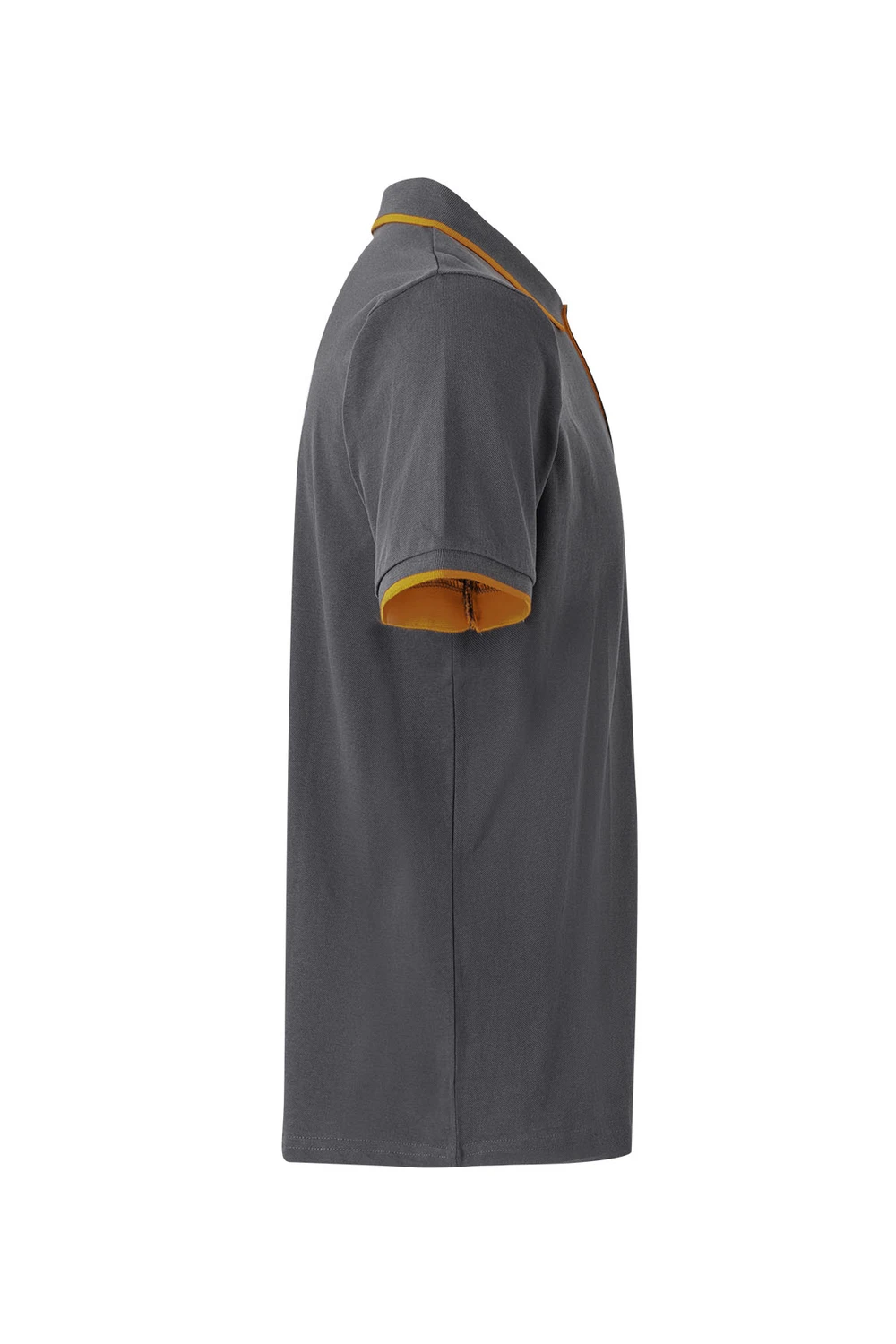 Das zweifarbige Polohemd überzeugt durch seinen modernen Look und hohe Funktionalität – ideal für den Einsatz im Handwerk und in der Industrie. Es verfügt über eine zentrale Knopfleiste, einen Kragen und Ärmelbündchen im Rippenstrick sowie kontrastfarbene Details an Krageninnenseite, Ärmelsaum, Knopfleiste und Nahtabdeckung, die dem Shirt eine sportlich-professionelle Optik verleihen. Das Gewebe bietet angenehmen Tragekomfort, Atmungsaktivität und Pflegeleichtigkeit – perfekt für den täglichen Arbeitseinsatz. Erhältlich in verschiedenen Farbkombinationen mit Warnfarben-Elementen und in den Größen XS–3XL.